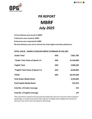 Page 3 - MBRF PR REPORT - JULY 2025 - ARABIC