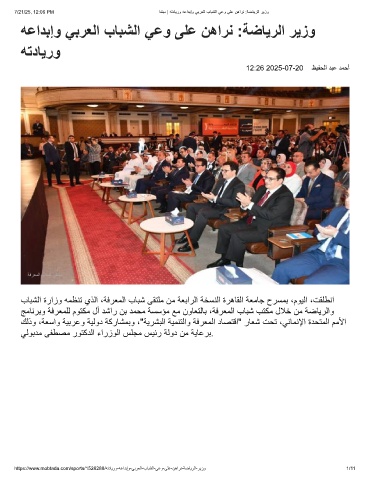 بﺎﺑﺷﻟا ةرازو ﮫﻣظﻧﺗ يذﻟا ،ﺔﻓرﻌﻣﻟا بﺎﺑﺷ ﻰﻘﺗﻠﻣ نﻣ ﺔﻌﺑارﻟا ﺔﺧﺳﻧﻟا ةرھﺎﻘﻟا ﺔﻌﻣﺎﺟ حرﺳﻣﺑ ،موﯾﻟا ،تﻘﻠطﻧا