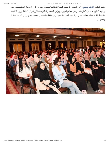 ﻰﻠﻋ ،تﺎﯾﺻﺧﺷﻟا رﺎﺑﻛو ءارزوﻟا نﻣ ددﻋ روﺿﺣﺑ ﺔﯾﺣﺎﺗﺗﻓﻻا ﺔﺳﻠﺟﻟا ﺔﺿﺎﯾرﻟاو بﺎﺑﺷﻟا رﯾزو ﻲﺣﺑﺻ فرﺷأ روﺗﻛدﻟا دﮭﺷو