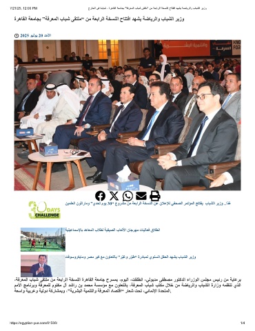 ةﺮھﺎﻘﻟا ﺔﻌﻣﺎﺠﺑ ”ﺔﻓﺮﻌﻤﻟا بﺎﺒﺷ ﻰﻘﺘﻠﻣ“ ﻦﻣ ﺔﻌﺑاﺮﻟا ﺔﺨﺴﻨﻟا حﺎﺘﺘﻓا ﺪﮭﺸﯾ ﺔﺿﺎﯾﺮﻟاو بﺎﺒﺸﻟا ﺮﯾزو
