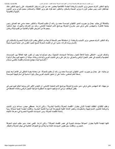 بﺎﺒﺸﻟا ﺮﯾزو ﺪﻋﺎﺴﻣ ،يﺪﺠﻣ ﻰﻔﻄﺼﻣ ﺎھرادأ ﻲﺘﻟاو ،”ﺔﯾﺮﺸﺒﻟا ﺔﯿﻤﻨﺘﻟاو ﺔﻓﺮﻌﻤﻟا دﺎﺼﺘﻗا“ ناﻮﻨﻌﺑ ﻰﻟوﻷا ﺔﺴﻠﺠﻟا ﺖﻘﻠﻄﻧا ،حﺎﺘﺘﻓﻻا ﺐﻘﻋو