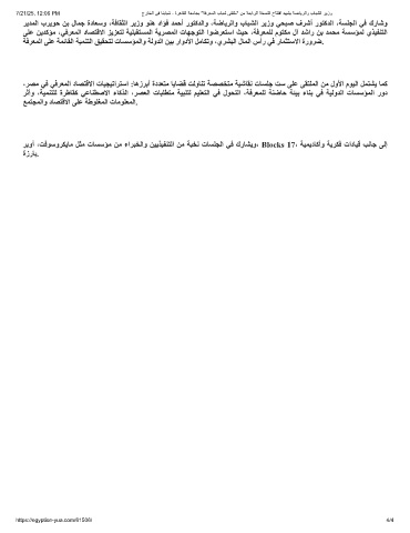 ﻰﻠﻋ ﻦﯾﺪﻛﺆﻣ ،ﻲﻓﺮﻌﻤﻟا دﺎﺼﺘﻗﻻا ﺰﯾﺰﻌﺘﻟ ﺔﯿﻠﺒﻘﺘﺴﻤﻟا ﺔﯾﺮﺼﻤﻟا تﺎﮭﺟﻮﺘﻟا اﻮﺿﺮﻌﺘﺳا ﺚﯿﺣ ،ﺔﻓﺮﻌﻤﻠﻟ مﻮﺘﻜﻣ لآ ﺪﺷار ﻦﺑ ﺪﻤﺤﻣ ﺔﺴﺳﺆﻤﻟ يﺬﯿﻔﻨﺘﻟا