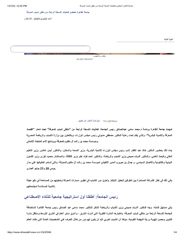 دﺎﺻﺗﻗا" رﺎﻌﺷ تﺣﺗ "ﺔﻓرﻌﻣﻟا بﺎﺑﺷ ﻰﻘﺗﻠﻣ" نﻣ ﺔﻌﺑارﻟا ﺔﺧﺳﻧﻟا تﺎﯾﻟﺎﻌﻓ ،ﺔﻌﻣﺎﺟﻟا سﯾﺋر قدﺎﺻﻟادﺑﻋ ﻲﻣﺎﺳ دﻣﺣﻣ.د ﺔﺳﺎﺋرﺑ ةرھﺎﻘﻟا ﺔﻌﻣﺎﺟ تدﮭﺷ