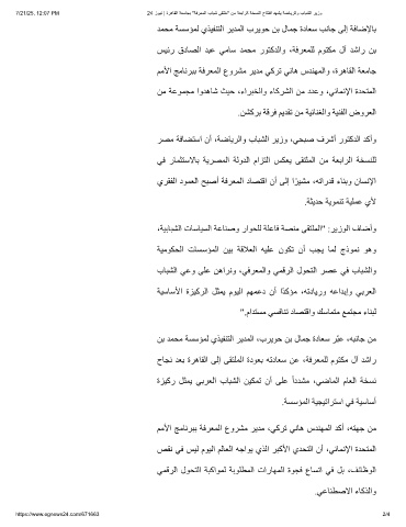 7/21/25, 12:07 PM 24 زوﯾﻧ | ةرھﺎﻘﻟا ﺔﻌﻣﺎﺟﺑ "ﺔﻓرﻌﻣﻟا بﺎﺑﺷ ﻰﻘﺗﻠﻣ" نﻣ ﺔﻌﺑارﻟا ﺔﺧﺳﻧﻟا حﺎﺗﺗﻓا دﮭﺷﯾ ﺔﺿﺎﯾرﻟاو بﺎﺑﺷﻟا رﯾزو