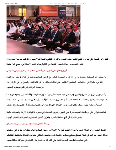 7/21/25, 12:07 PM بﺎﺑﺷﻟا نﯾﻛﻣﺗ وﺣﻧ ةوﻘﺑ كرﺣﺗﺗ رﺻﻣ :نودﻛؤﯾ ءارزو ..ﺔﻓرﻌﻣﻟا بﺎﺑﺷ ﻰﻘﺗﻠﻣ ﻲﻓ