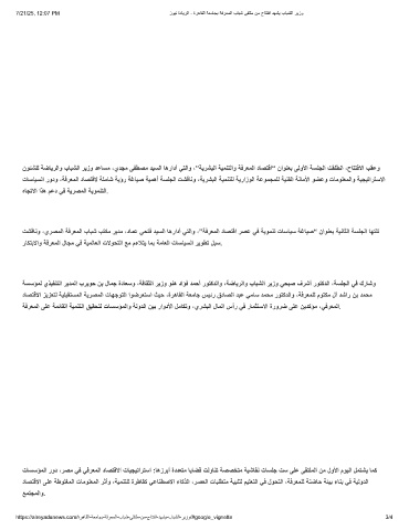 تﺷﻗﺎﻧو ،يرﺻﻣﻟا ﺔﻓرﻌﻣﻟا بﺎﺑﺷ بﺗﻛﻣ رﯾدﻣ ،دﺎﻣﻋ ﻲﺣﺗﻓ دﯾﺳﻟا ﺎھرادأ ﻲﺗﻟاو ،”ﺔﻓرﻌﻣﻟا دﺎﺻﺗﻗا رﺻﻋ ﻲﻓ ﺔﯾوﻣﻧﺗ تﺎﺳﺎﯾﺳ ﺔﻏﺎﯾﺻ“ ناوﻧﻌﺑ ﺔﯾﻧﺎﺛﻟا ﺔﺳﻠﺟﻟا ﺎﮭﺗﻠﺗ