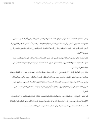 ﻲﻓ ﺔﯾرﺻﻣﻟا ﺔﯾوﻣﻧﺗﻟا تﺎﺳﺎﯾﺳﻟا رودو ،ﺔﻓرﻌﻣﻟا دﺎﺻﺗﻗﻻ ﺔﻠﻣﺎﺷ ﺔﯾؤر ﺔﻏﺎﯾﺻ ﺔﯾﻣھأ ﺔﺳﻠﺟﻟا تﺷﻗﺎﻧو ،ﺔﯾرﺷﺑﻟا ﺔﯾﻣﻧﺗﻠﻟ