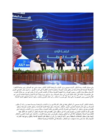 اًمهف رثكلأا مه بابشلا نأ رابتعإب ةفرعملا ءانبل يداصتقاو يلام لبقتسم ىلإ هتاروصت ليوحتو يرصملا بابشلا تاردق ريوطت