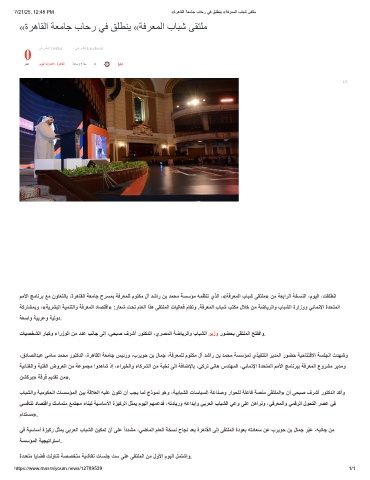 7/21/25, 12:48 PM «ةرھﺎﻘﻟا ﺔﻌﻣﺎﺟ بﺎﺣر ﻲﻓ ﻖﻠطﻧﯾ «ﺔﻓرﻌﻣﻟا بﺎﺑﺷ ﻰﻘﺗﻠﻣ