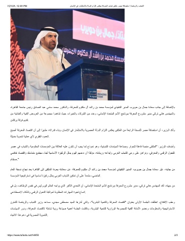 7/21/25, 12:48 PM نﺎﺳﻧﻹا ﻲﻓ رﺎﻣﺛﺗﺳﻻﺎﺑ ﺔﻟودﻟا مازﺗﻟا سﻛﻌﯾ ﺔﻓرﻌﻣﻟا بﺎﺑﺷ ﻰﻘﺗﻠﻣ رﺻﻣ ﺔﻓﺎﺿﺗﺳا :ﺔﺿﺎﯾرﻟاو بﺎﺑﺷﻟا