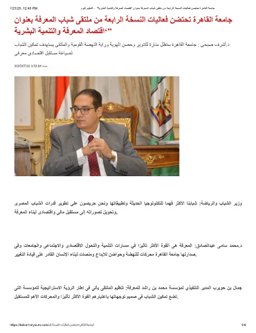 7/21/25, 12:48 PM موﯾﻟا مﯾﻠﻌﺗﻟا - "ﺔﯾرﺷﺑﻟا ﺔﯾﻣﻧﺗﻟاو ﺔﻓرﻌﻣﻟا دﺎﺻﺗﻗا' ناوﻧﻌﺑ ﺔﻓرﻌﻣﻟا بﺎﺑﺷ ﻰﻘﺗﻠﻣ نﻣ ﺔﻌﺑارﻟا ﺔﺧﺳﻧﻟا تﺎﯾﻟﺎﻌﻓ نﺿﺗﺣﺗ ةرھﺎﻘﻟا ﺔﻌﻣﺎﺟ