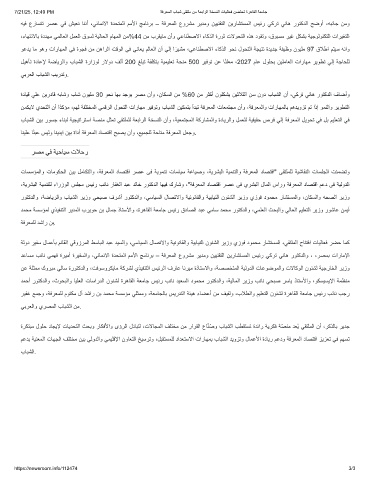 ةدﺎﯾﻗ ﻲﻠﻋ نﯾردﺎﻗ ﮫﺑﺎﺷو بﺎﺷ نوﯾﻠﻣ 30 وﺣﻧ ﺎﮭﺑ دﺟوﯾ رﺻﻣ نأو ،نﺎﻛﺳﻟا نﻣ %60 نﻣ رﺛﻛأ نوﻠﻛﺷﯾ نﯾﺛﻼﺛﻟا نﺳ نود بﺎﺑﺷﻟا نأ ،ﻲﻛرﺗ ﻲﻧﺎھ روﺗﻛدﻟا فﺎﺿأو