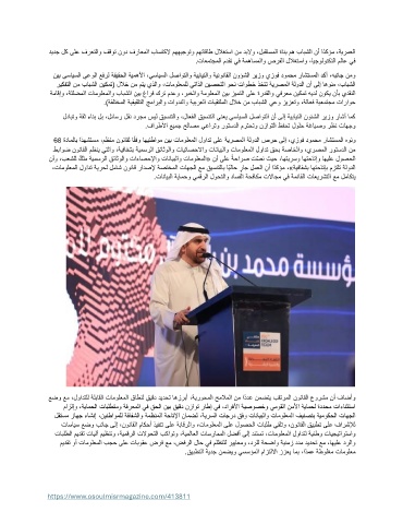 ريكفتلا نم بابشلا نيكمت( للاخ نم متي يذلاو ،تامولعملل يتاذلا نيصحتلا وحن تاوطخ ذختت ةيرصملا ةلودلا نأ ىلإ اهونم ،بابشلا