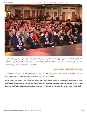 ﺔﺿﺎﯾﺮﻟاو بﺎﺒﺸﻟا ﺮﯾزو ﺪﻋﺎﺴﻣ ،يﺪﺠﻣ ﻰﻔﻄﺼﻣ ﺎھرادأ ﻲﺘﻟاو ،"ﺔﯾﺮﺸﺒﻟا ﺔﯿﻤﻨﺘﻟاو ﺔﻓﺮﻌﻤﻟا دﺎﺼﺘﻗا" ناﻮﻨﻌﺑ ﻰﻟوﻷا ﺔﺴﻠﺠﻟا ﺖﻘﻠﻄﻧا ،حﺎﺘﺘﻓﻻا ﺐﻘﻋو