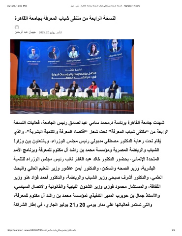 7/21/25, 12:53 PM زوﯾﻧ ١رﺑﻣﻧ - ةرھﺎﻘﻟا ﺔﻌﻣﺎﺟﺑ ﺔﻓرﻌﻣﻟا بﺎﺑﺷ ﻰﻘﺗﻠﻣ نﻣ ﺔﻌﺑارﻟا ﺔﺧﺳﻧﻟا - Number1News