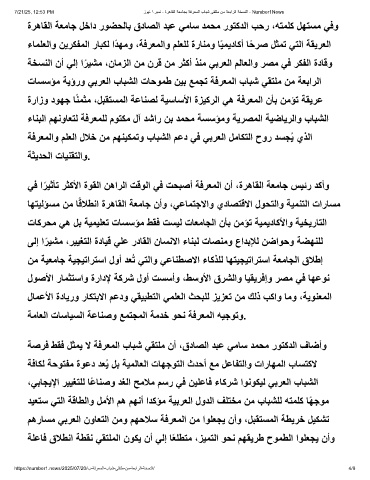 7/21/25, 12:53 PM زوﯾﻧ ١رﺑﻣﻧ - ةرھﺎﻘﻟا ﺔﻌﻣﺎﺟﺑ ﺔﻓرﻌﻣﻟا بﺎﺑﺷ ﻰﻘﺗﻠﻣ نﻣ ﺔﻌﺑارﻟا ﺔﺧﺳﻧﻟا - Number1News