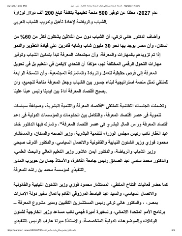 7/21/25, 12:53 PM زوﯾﻧ ١رﺑﻣﻧ - ةرھﺎﻘﻟا ﺔﻌﻣﺎﺟﺑ ﺔﻓرﻌﻣﻟا بﺎﺑﺷ ﻰﻘﺗﻠﻣ نﻣ ﺔﻌﺑارﻟا ﺔﺧﺳﻧﻟا - Number1News