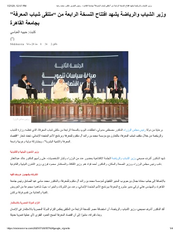 7/21/25, 12:57 PM ﮫﺑھو دﻣﺣﻣ روﺗﻛد رﯾرﺣﺗﻟا سﯾﺋر - ةرھﺎﻘﻟا ﺔﻌﻣﺎﺟﺑ "ﺔﻓرﻌﻣﻟا بﺎﺑﺷ ﻰﻘﺗﻠﻣ" نﻣ ﺔﻌﺑارﻟا ﺔﺧﺳﻧﻟا حﺎﺗﺗﻓا دﮭﺷﯾ ﺔﺿﺎﯾرﻟاو بﺎﺑﺷﻟا رﯾزو