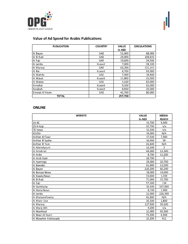 Value of Ad Spend for Arabic Publications