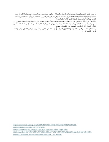 لماكتو يرشبلا لاملا سأر يف رامثتسلاا ةرورض ىلع نيدكؤم ،يفرعملا داصتقلاا زيزعتل ةيلبقتسملا ةيرصملا تاهجوتلا اوضرعتسا