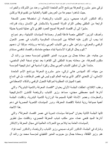 7/21/25, 12:59 PM رﻣﺣأ طﺧ | ﺔﺿﺎﯾر | ةرھﺎﻘﻟا ﺔﻌﻣﺎﺟﺑ ”ﺔﻓرﻌﻣﻟا بﺎﺑﺷ ﻰﻘﺗﻠﻣ” نﻣ ﺔﻌﺑارﻟا ﺔﺧﺳﻧﻟا حﺎﺗﺗﻓا دﮭﺷﯾ ﺔﺿﺎﯾرﻟاو بﺎﺑﺷﻟا رﯾزو