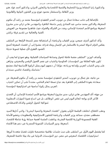 7/21/25, 1:00 PM زﻣﯾﺎﺗ قرﺷﻟا - ةرھﺎﻘﻟا ﺔﻌﻣﺎﺟﺑ "ﺔﻓرﻌﻣﻟا بﺎﺑﺷ ﻰﻘﺗﻠﻣ" نﻣ ﺔﻌﺑارﻟا ﺔﺧﺳﻧﻟا حﺎﺗﺗﻓا دﮭﺷﯾ ﺔﺿﺎﯾرﻟاو بﺎﺑﺷﻟا رﯾزو