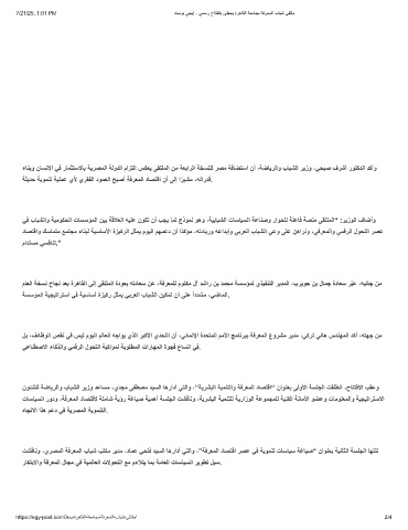 ءﺎﻧﺑو نﺎﺳﻧﻹا ﻲﻓ رﺎﻣﺛﺗﺳﻻﺎﺑ ﺔﯾرﺻﻣﻟا ﺔﻟودﻟا مازﺗﻟا سﻛﻌﯾ ﻰﻘﺗﻠﻣﻟا نﻣ ﺔﻌﺑارﻟا ﺔﺧﺳﻧﻠﻟ رﺻﻣ ﺔﻓﺎﺿﺗﺳا نأ ،ﺔﺿﺎﯾرﻟاو بﺎﺑﺷﻟا رﯾزو ،ﻲﺣﺑﺻ فرﺷأ روﺗﻛدﻟا دﻛأو