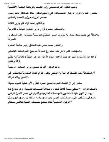7/21/25, 1:03 PM مﺎﺟﺑ "ﺔﻓرﻌﻣﻟا بﺎﺑﺷ ﻰﻘﺗﻠﻣ" نﻣ ﺔﻌﺑارﻟا ﺔﺧﺳﻧﻟا حﺎﺗﺗﻓا دﮭﺷﯾ ﺔﺿﺎﯾرﻟاو بﺎﺑﺷﻟا رﯾزو