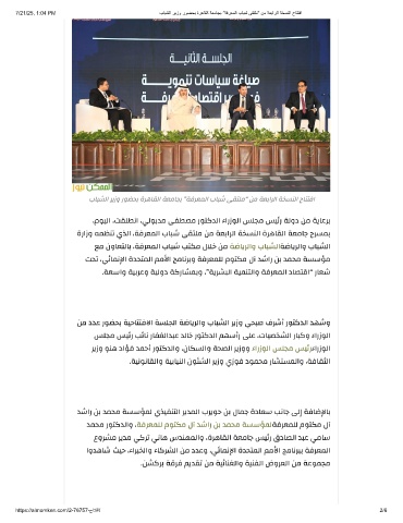 بﺎﺒﺸﻟا ﺮﻳزو رﻮﻀﺤﺑ ةﺮﻫﺎﻘﻟا ﺔﻌﻣﺎﺠﺑ ”ﺔﻓﺮﻌﻤﻟا بﺎﺒﺷ ﻰﻘﺘﻠﻣ“ ﻦﻣ ﺔﻌﺑاﺮﻟا ﺔﺨﺴﻨﻟا حﺎﺘﺘﻓا