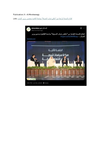 Publication: X – Al Momkenegy Link: بابشلا ريزو روضحب ةرهاقلا ةعماجب "ةفرعملا بابش ىقتلم" نم ةعبارلا ةخسنلا حاتتفا