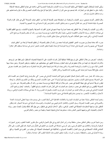 مﻣﻷا ﺞﻣﺎﻧرﺑ لﻣﻌﯾ“ :فﺎﺿأو .”مﮭﻗﺎﻓآ ﻊّﺳوﺗو بﺎﺑﺷﻟا تاردﻗ ز ّ زﻌُﺗ ﻲﺗﻟا تاردﺎﺑﻣﻟا مﻋد لﺻاوﻧ ،رﺻﻣ ﻲﻓ بﺗﻛﻣﻟا ﺞﻣارﺑو ﻲﻣﯾﻠﻗﻹا ﺔﻓرﻌﻣﻟا