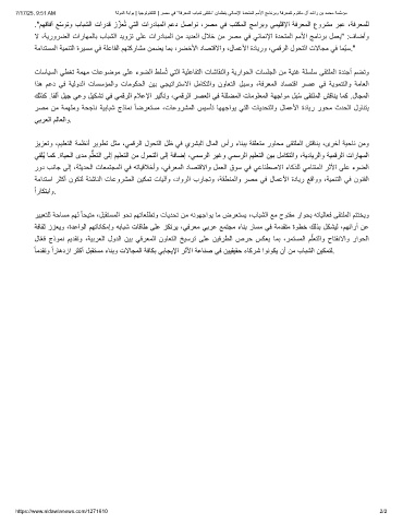 ."مﮭﻗﺎﻓآ ﻊّﺳوﺗو بﺎﺑﺷﻟا تاردﻗ ز ّ زﻌُﺗ ﻲﺗﻟا تاردﺎﺑﻣﻟا مﻋد لﺻاوﻧ ،رﺻﻣ ﻲﻓ بﺗﻛﻣﻟا ﺞﻣارﺑو ﻲﻣﯾﻠﻗﻹا ﺔﻓرﻌﻣﻟا عورﺷﻣ رﺑﻋ ،ﺔﻓرﻌﻣﻠﻟ