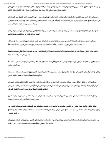 ﻲﻓ ﺎﻤّﯿﺳ ﻻ ،ﺔﯾروﺮﻀﻟا تارﺎﮭﻤﻟﺎﺑ بﺎﺒﺸﻟا ﺪﯾوﺰﺗ ﻰﻠﻋ تاردﺎﺒﻤﻟا ﻦﻣ ﺪﯾﺪﻌﻟا لﻼﺧ ﻦﻣ ﺮﺼﻣ ﻲﻓ ﻲﺋﺎﻤﻧﻹا ةﺪﺤﺘﻤﻟا ﻢﻣﻷا ﺞﻣﺎﻧﺮﺑ ﻞﻤﻌﯾ“ :فﺎﺿأو