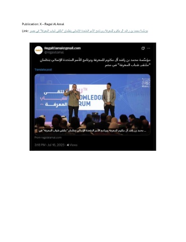 Publication: X – Regal Al Amal Link: رصم يف ”ةفرعملا بابش ىقتلم“ نامظني يئامنلإا ةدحتملا مملأا جمانربو ةفرعملل موتكم لآ دشار نب دمحم ةسَّسؤم