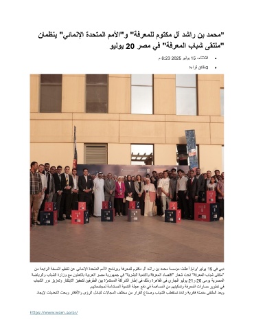 نم ةعبارلا ةخسنلا ميظنت نع يئامنلإا ةدحتملا مملأا جمانربو ةفرعملل موتكم لآ دشار نب دمحم ةسسؤم تنلعأ /ماو/ ويلوي 15 يف يبد