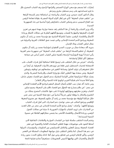 7/16/25, 9:52 AM رﺻﻣ ﻲﻓ "ﺔﻓرﻌﻣﻟا بﺎﺑﺷ ﻰﻘﺗﻠﻣ" نﺎﻣظﻧﯾ ﻲﺋﺎﻣﻧﻹا ةدﺣﺗﻣﻟا مﻣﻷا ﺞﻣﺎﻧرﺑو ﺔﻓرﻌﻣﻠﻟ موﺗﻛﻣ لآ دﺷار نﺑ دﻣﺣﻣ ﺔﺳﱠﺳؤﻣ
