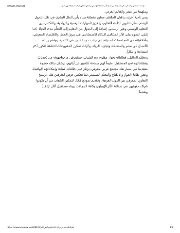 7/16/25, 9:52 AM رﺻﻣ ﻲﻓ "ﺔﻓرﻌﻣﻟا بﺎﺑﺷ ﻰﻘﺗﻠﻣ" نﺎﻣظﻧﯾ ﻲﺋﺎﻣﻧﻹا ةدﺣﺗﻣﻟا مﻣﻷا ﺞﻣﺎﻧرﺑو ﺔﻓرﻌﻣﻠﻟ موﺗﻛﻣ لآ دﺷار نﺑ دﻣﺣﻣ ﺔﺳﱠﺳؤﻣ