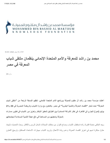 7/16/25, 9:52 AM رﺻﻣ ﻲﻓ ﺔﻓرﻌﻣﻟا بﺎﺑﺷ ﻰﻘﺗﻠﻣ نﺎﻣظﻧﯾ ﻲﺋﺎﻣﻧﻹا ةدﺣﺗﻣﻟا مﻣﻷاو ﺔﻓرﻌﻣﻠﻟ دﺷار نﺑ دﻣﺣﻣ