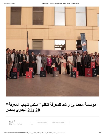 7/16/25, 9:53 AM رﺻﻣﺑ يرﺎﺟﻟا 21و 20 "ﺔﻓرﻌﻣﻟا بﺎﺑﺷ ﻰﻘﺗﻠﻣ" مظﻧﺗ ﺔﻓرﻌﻣﻠﻟ دﺷار نﺑ دﻣﺣﻣ ﺔﺳﺳؤﻣ