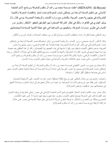 https://menafn.com/arabic/1109805931/رﺻﻣﺑ-يرﺎﺟﻟا-21و-20-ﺔﻓرﻌﻣﻟا-بﺎﺑﺷ-ﻰﻘﺗﻠﻣ-مظﻧﺗ-ﺔﻓرﻌﻣﻠﻟ-دﺷار-نﺑ-دﻣﺣﻣ-ﺔﺳﺳؤﻣ 2/2