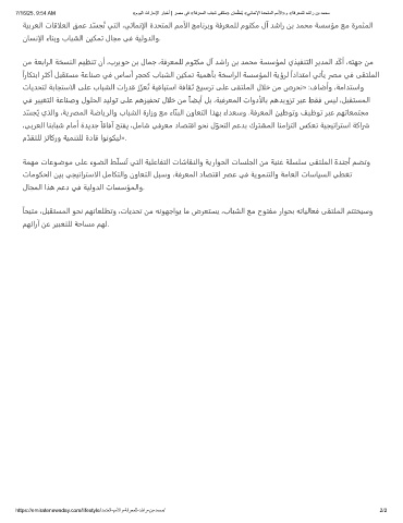 7/16/25, 9:54 AM «موﯾﻟا تارﺎﻣﻹا رﺎﺑﺧأ | رﺻﻣ ﻲﻓ «ﺔﻓرﻌﻣﻟا بﺎﺑﺷ ﻰﻘﺗﻠﻣ» نﺎﻣ ّ ظﻧُﯾ «ﻲﺋﺎﻣﻧﻹا ةدﺣﺗﻣﻟا مﻣﻷا»و «ﺔﻓرﻌﻣﻠﻟ دﺷار نﺑ دﻣﺣﻣ