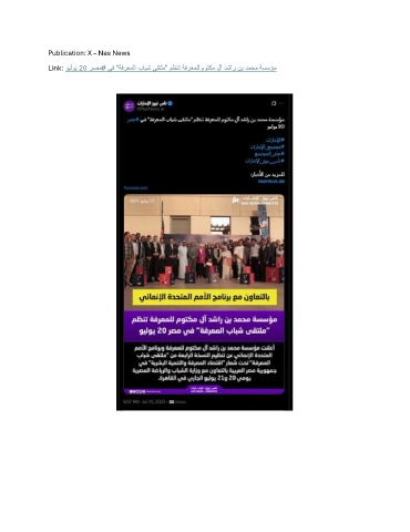 Publication: X – Nas News Link: ويلوي 20 رصم# يف "ةفرعملا بابش ىقتلم" مظنت ةفرعملل موتكم لآ دشار نب دمحم ةسسؤم