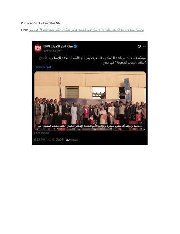 Publication: X – Emirates NN Link: رصم يف ”ةفرعملا بابش ىقتلم“ نامظني يئامنلإا ةدحتملا مملأا جمانربو ةفرعملل موتكم لآ دشار نب دمحم ةسَّسؤم