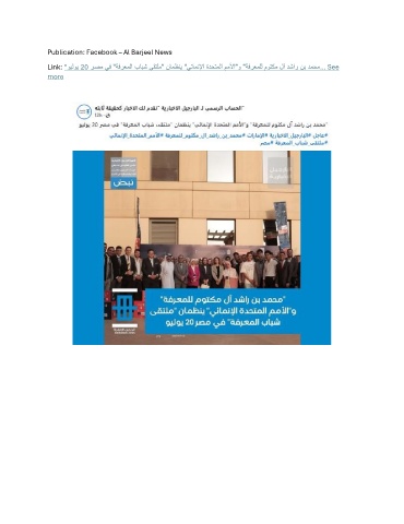 Publication: Facebook – Al Barjeel News Link: "ويلوي 20 رصم يف "ةفرعملا بابش ىقتلم" نامظني "يئامنلإا ةدحتملا مملأا"و "ةفرعملل موتكم لآ دشار نب دمحم… See more