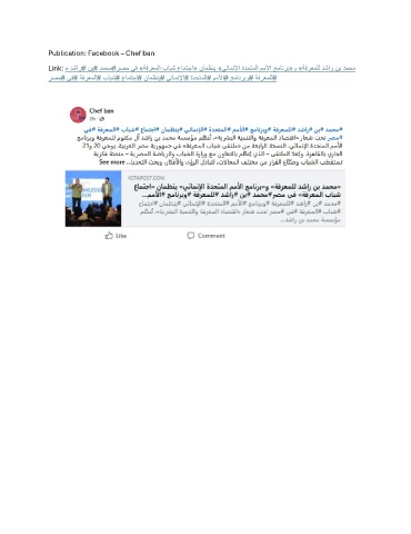 Publication: Facebook – Chef ban Link: « دشار# نب# دمحم#رصم يف »ةفرعملا بابش عامتجا« نامظني »يئامنلإا ةدحتملا مملأا جمانرب«و »ةفرعملل دشار نب دمحم رصم# يف# ةفرعملا# بابش# عامتجا# نامظني# يئامنلإا# ةدحتملا# مملأا# جمانربو# ةفرعملل#
