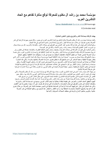 يتلاو ،ةفرعملل موتكم لآ دشار نب دمحم ةسَّسؤم عم ةكارشلا هذهب ءادعس برعلا نيرشانلا داحتا يف نحن“ :داشر دمحم لاق ،هتهج نم