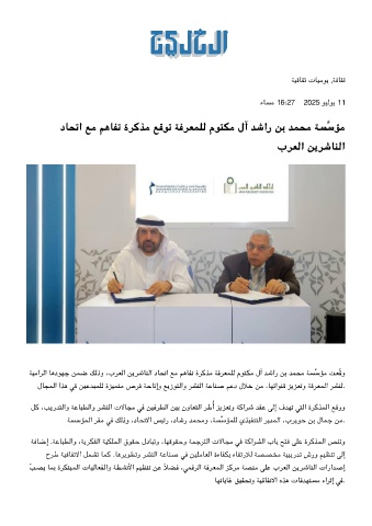 ﺔﻴﻣاﺮﻟا ﺎﻫدﻮﻬﺟ ﻦﻤﺿ ﻚﻟذو ،بﺮﻌﻟا ﻦﻳﺮﺷﺎﻨﻟا دﺎﺤﺗا ﻊﻣ ﻢﻫﺎﻔﺗ ةﺮﻛﺬﻣ ﺔﻓﺮﻌﻤﻠﻟ مﻮﺘﻣ لآ ﺪﺷار ﻦﺑ ﺪﻤﺤﻣ ﺔﺴﺳﺆﻣ ﺖﻌّﻗو