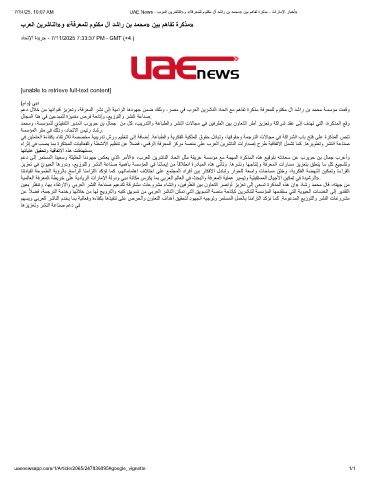 7/14/25, 10:07 AM UAE News - برﻌﻟا نﯾرﺷﺎﻧﻟا»و «ﺔﻓرﻌﻣﻠﻟ موﺗﻛﻣ لآ دﺷار نﺑ دﻣﺣﻣ» نﯾﺑ مھﺎﻔﺗ ةرﻛذﻣ - تارﺎﻣﻹا رﺎﺑﺧأ»