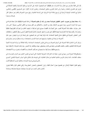 ﻲﻓ ﺔﻠﺛﻣﺗﻣﻟا ﺔﯾﻣﻠﻌﻟاو ﺔﯾﻧﺎﺳﻧﻹا ﺎﮭﺗﻟﺎﺳرﺑ ﺎﮭﻣازﺗﻟا ﻰﻠﻋ دﻛؤﺗﻟ ،”ﻊﻣﺗﺟﻣﻟا مﺎﻋ“ 2025 مﺎﻋ تارﺎﻣﻹا ﺔﻟود نﻼﻋإ ﻊﻣ نﻣازﺗﻟﺎﺑ ﺔﱠﻣﻘﻟا ﻲﺗﺄﺗ ﺎﻣﻛ