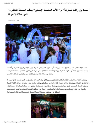 7/9/25, 9:47 AM “ﺔﯾرﺎﺑﺧﻹا لﺑوﻠﻏ ﺔﻛﺑﺷ – ”ﺔﻓرﻌﻣﻟا ﺔﱠﻣﻗ“ نﻣ ةرﺷﺎﻌﻟا ﺔﺧﺳﻧﻟا ﺎﻣظﻧﯾ ”ﻲﺋﺎﻣﻧﻹا ةدﺣﺗﻣﻟا مﻣﻷا ”و ”ﺔﻓرﻌﻣﻠﻟ دﺷار نﺑ دﻣﺣﻣ